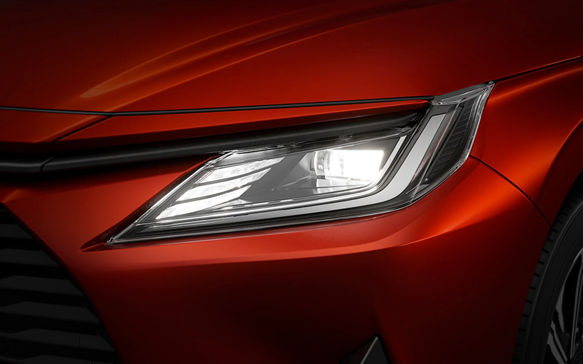 Yaris Sedan makes a strong first impression with a head-turning front grille. The low black grille perfectly complements the upper grille and seamlessly integrates with the front headlights.