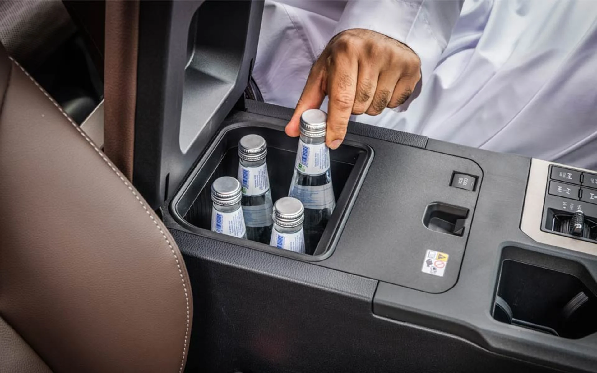 A center console cool box is convenient way to keep drinks cool on the go, especially on long road trips.