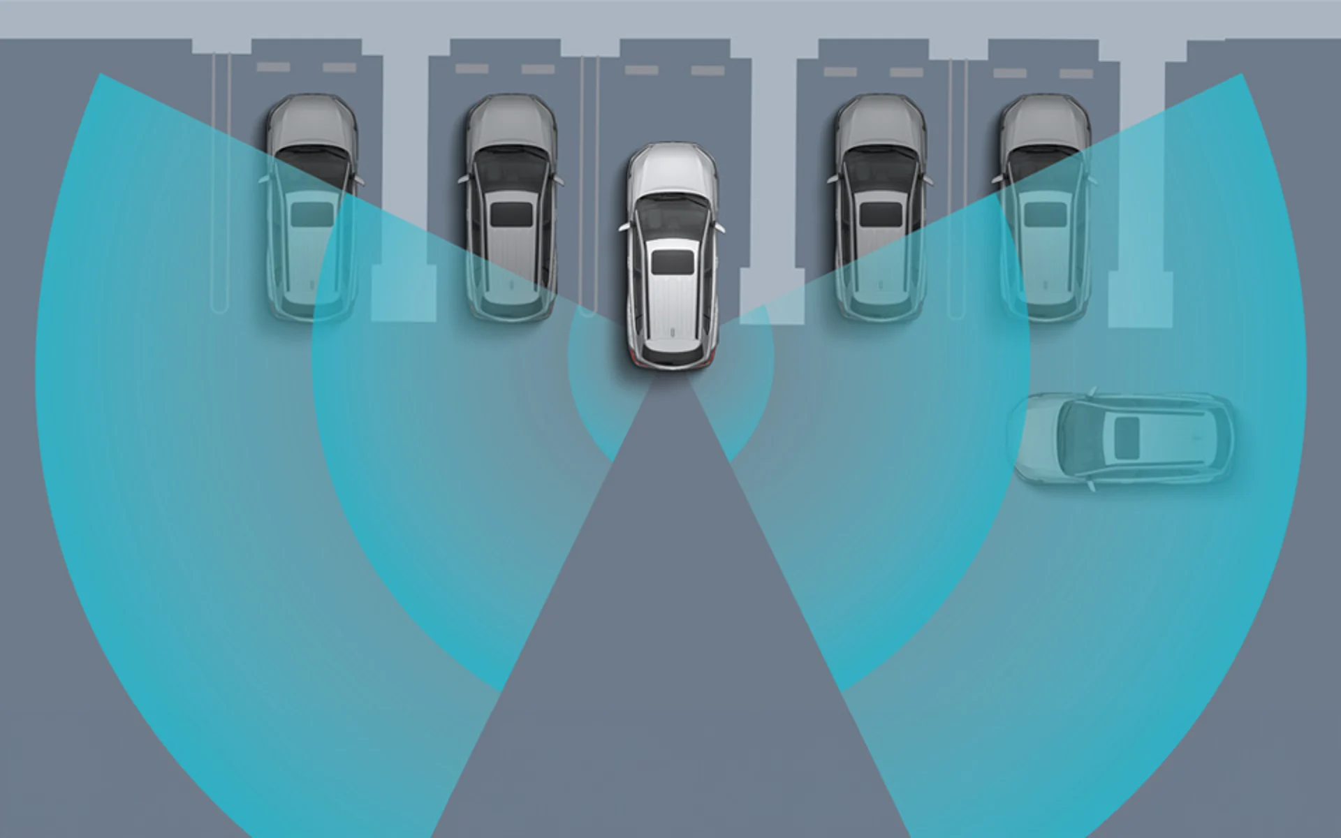 RCTA detects vehicles approaching from either side when backing out of a parking space. It alerts the driver with a sound and a flashing mirror indicator.