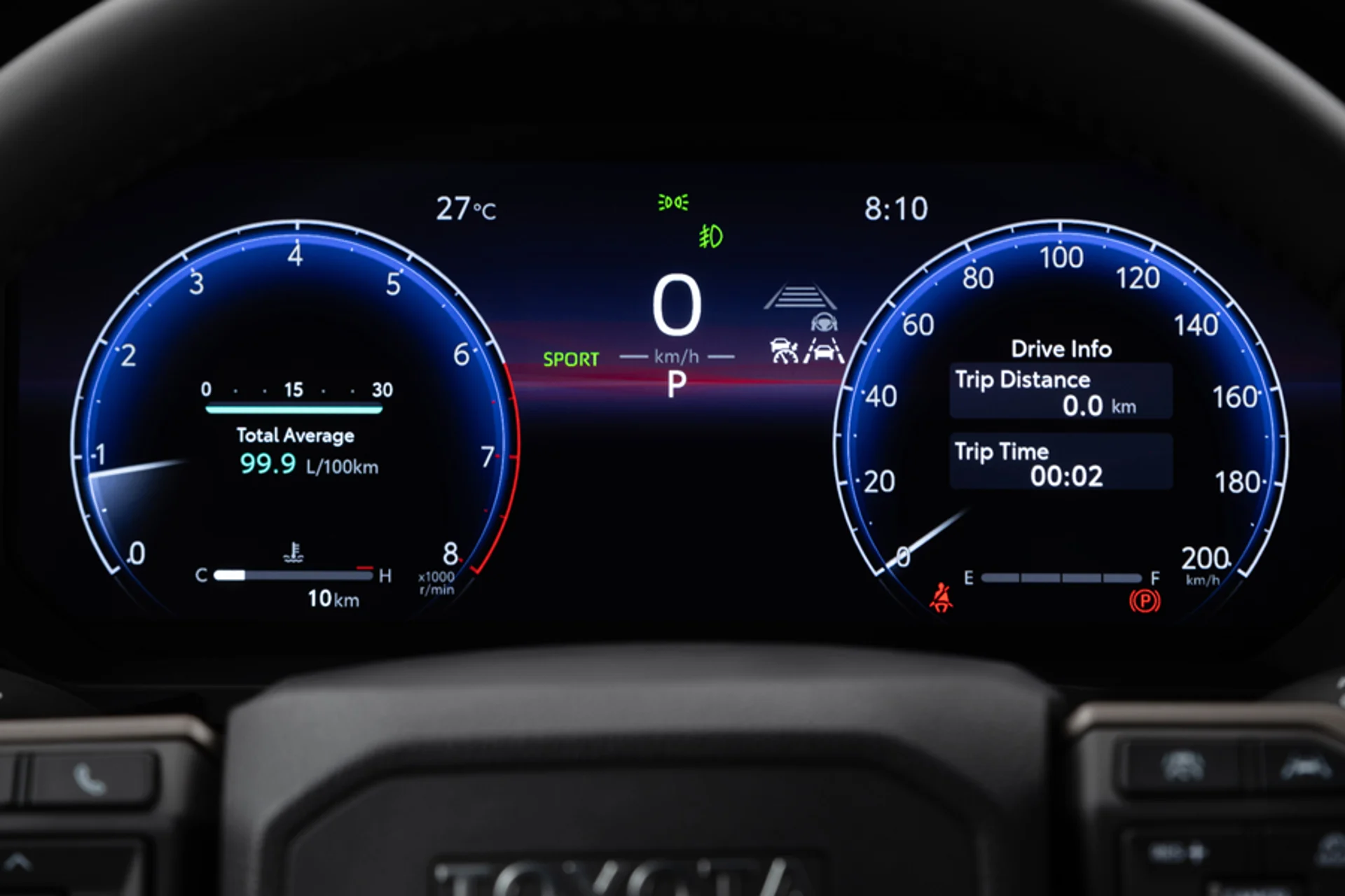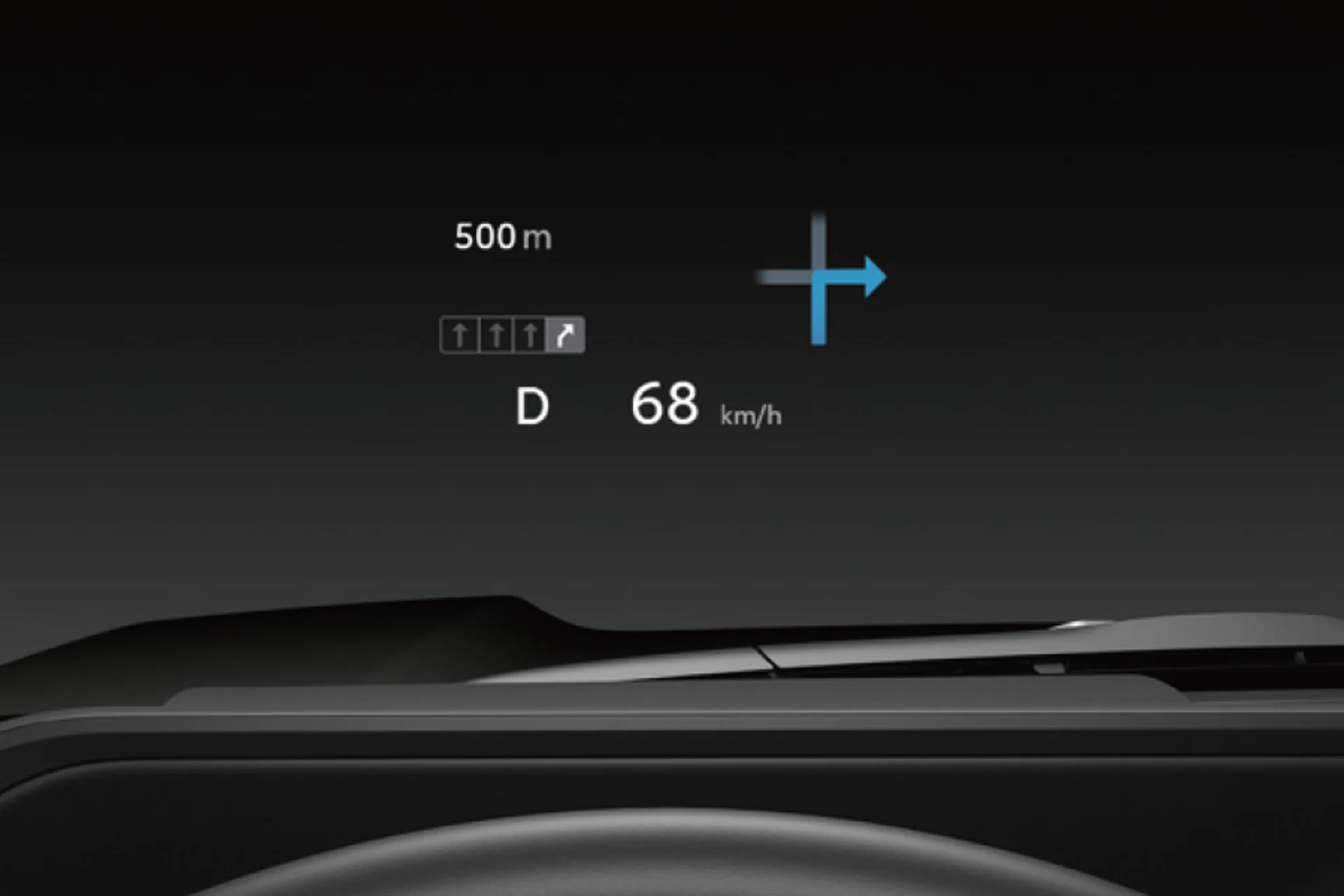 Projects essential driving information onto the windshield